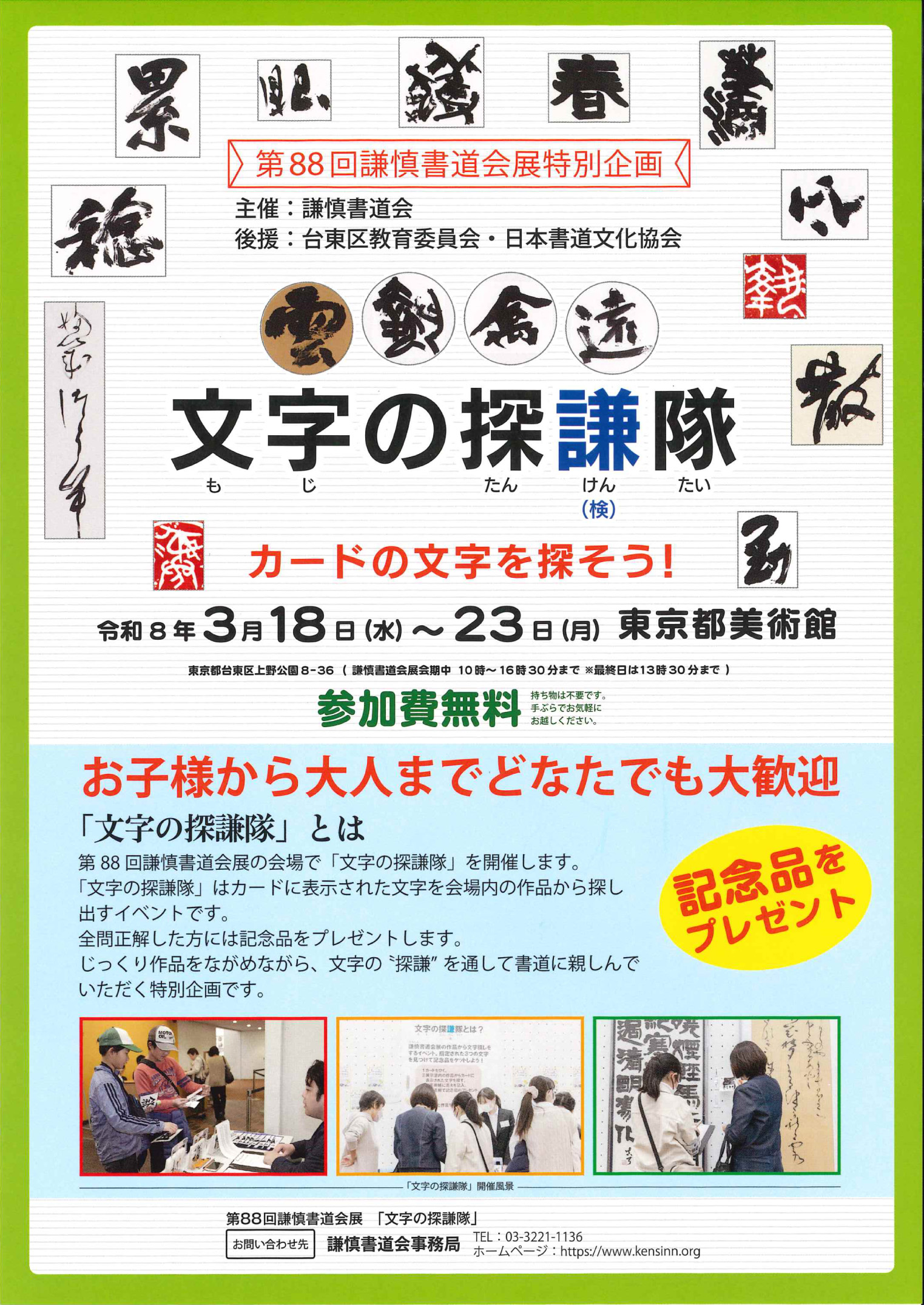 3月19日(木) ◇11時・・・茂住菁邨〈漢字〉 ◇14時・・・石坂雅彦〈漢字〉 3月21日(土) ◇11時・・・竹内藍山〈漢字〉 ◇14時・・・岡野楠亭〈篆刻〉 3月22日(日) ◇11時・・・梶原千煕〈漢字〉 ◇14時・・・藤澤順子〈かな〉 |